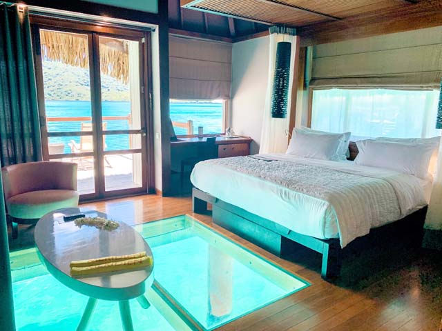 ボラボラ島では2畳程の大きなガラスの床があるのはここだけ!部屋でも海を目一杯楽しめます。