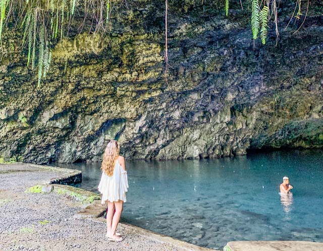 洞窟内には、海がすぐ近くにあるというのに淡水という珍しい池があり、泳いでる人もいますが、水は少し冷たかったです。