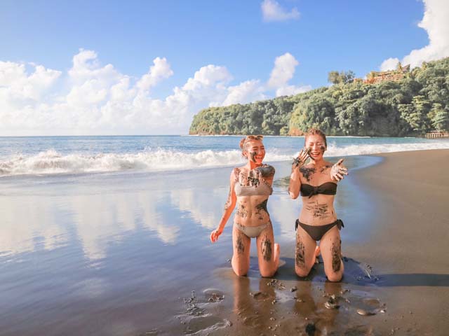 タヒチの財産の1つでもある火山の噴火によって生まれた黒砂にはミネラルがたっぷりの含まれており、キメが細かくさらっとした砂なので、スクラブしてお肌ツルツルに!海水浴すると温泉に入ったかのようにすべすべになるんです!実はフランスの有名なスパはタヒチ産の黒砂を使用。その成分は世界で認められてます。