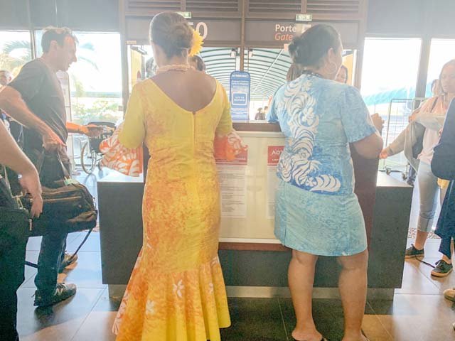 中に入るとキャビンアテンダントの方が国の花(ティアレ)をプレゼントしてくれます。