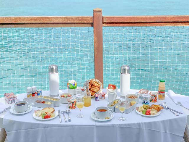 朝食では世界中でタヒチしか味わえないおもてなし。『 カヌーブレックファースト 』をお願いしました。