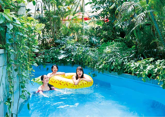 日焼けや暑さが気になる方は、南国の植物に囲まれてゆったりとした時間を過ごすことができる屋内プール「森のプール」がオススメ♪
