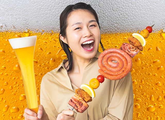 大人気の「ビール祭」は、高さ45cmのメガ級の特大グラスビール「ハーフヤードビール」が今年も登場!ビールにぴったり!約50cmのメガ串や、フルーツ串も登場するなど、大人からお子様までお楽しみいただけます。この夏はビール祭で盛り上がろう!