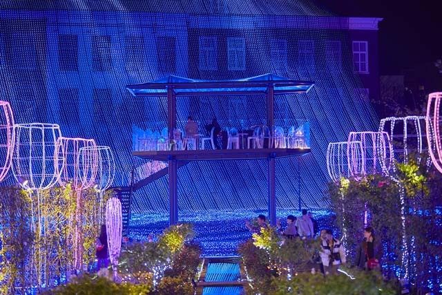 夏の光の王国はヨーロッパの街並みのライトアップが美しく、幻想的なイルミネーションをお楽しみいただけます。