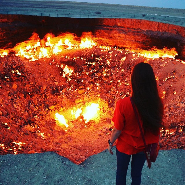 崩落事故により噴出した天然ガスが約50 年燃え続けている 地獄の門。現地点でこの天然ガスを食い止めることは困難とされており、未だにいつまで燃え続けるかは目処がたっていません。ご本人コメント(抜粋) ウズベキスタン&トルクメニスタン!!! このためにこの旅行を決めた!念願の場所です!!