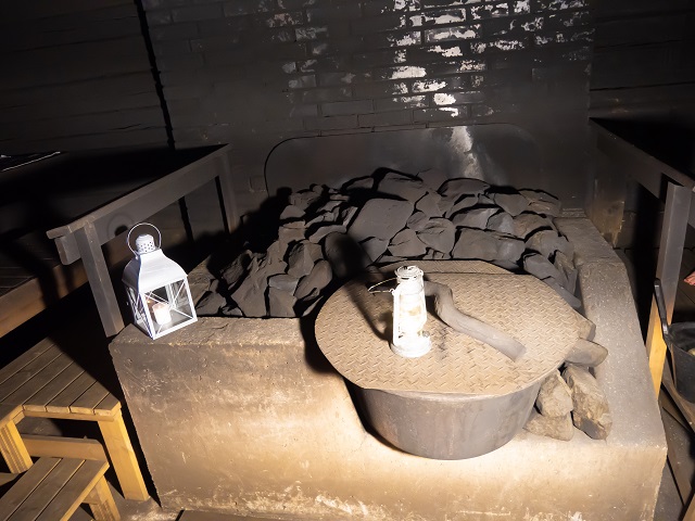 煙突のないサウナ室で6〜8時間薪を燃やし石を温め続け煙を充満させた後、灰を外に出し、石の余熱だけで入るサウナの原点とも言われるサウナ。手間と時間が非常にかかる為、フィンランドでも数が少ないとても貴重なサウナ。まさにキングオブサウナ!