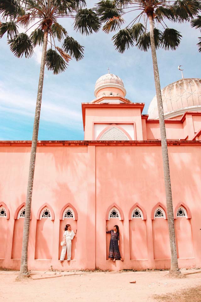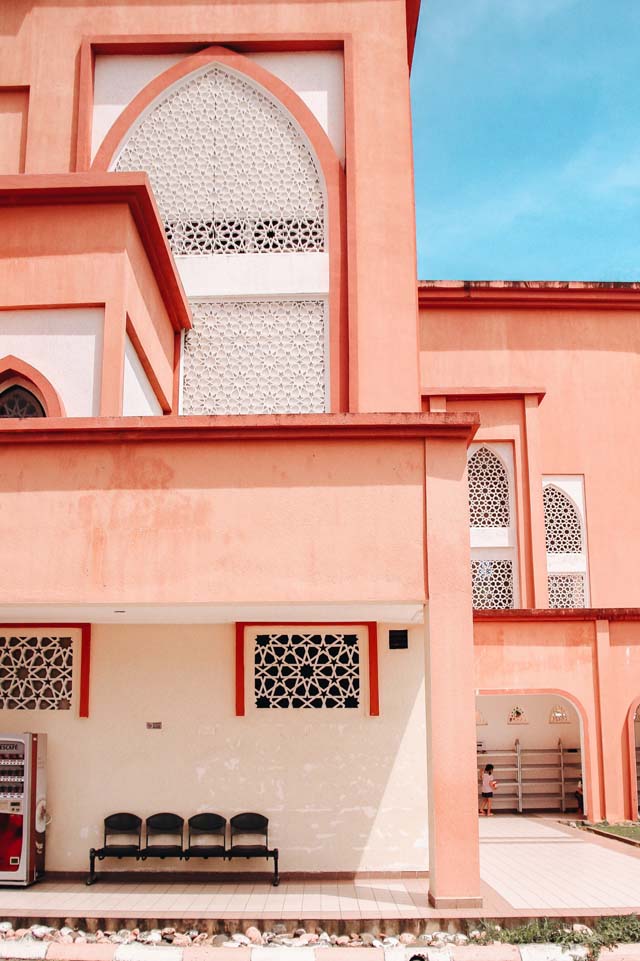 市内の観光で外せないのがモスクの見学。今回は2つのモスクを訪れました。一ヶ所目に訪れたのは“UMS Mosque”。ここはピンクモスクと呼ばれ、大学の敷地内にあります。今回モスクの中には入っていないのですが、外観だけでも十分楽しめます。