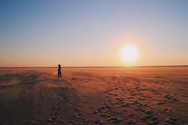 ビーチがあまりに広く、まるで砂漠に夕日が沈むよう。その景色が本当に絶景で、忘れられないサンセットとなりました。