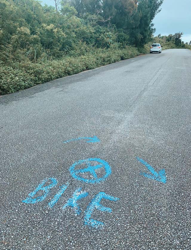 じわじわと人気爆発の絶景スポット三角点!伊良部島に位置しています。ややわかりにくい場所にあります。「フナウサギバナタ」から東に1,000mほど行った先にあり青いBIKEの文字が目印!