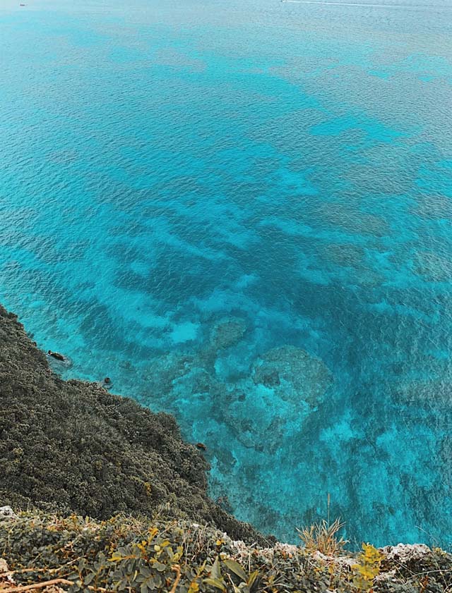 草木をかき分け向かったその先には絶景宮古ブルーが!