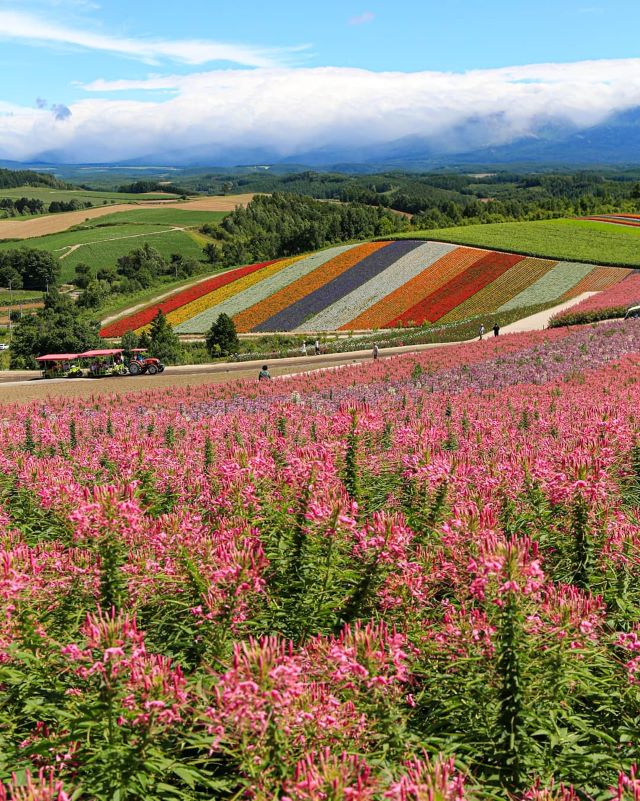 美瑛の小高い丘にある「四季彩の丘」は7ヘクタールもの広さを有します。夏は一面カラフルな花で埋め尽くされます。ご本人コメント(抜粋)四季彩の丘。富良野だと思ってたら、美瑛だったんだね😆インスタで見て、行ってみたかった場所😊晴れてて良かったなー😍バギーみたいの乗りたかったけど、一人だからな(笑)オレンジ色のメロン🍈食べてやりましたよ✨旨かった❗プラス、駐車場の目の前にある、うどん屋で昼飯。滞在時間は短かったけど、美瑛に行ったらお薦めの場所ですね❗花は綺麗だし😊花の綺麗な所行くと、本当にモデルが欲しくなる😍