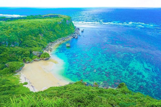 果報(かふう)バンタのバンタとは沖縄の方言で「崖」という意味。約120メートルの崖から、絶景を眺めることができます。