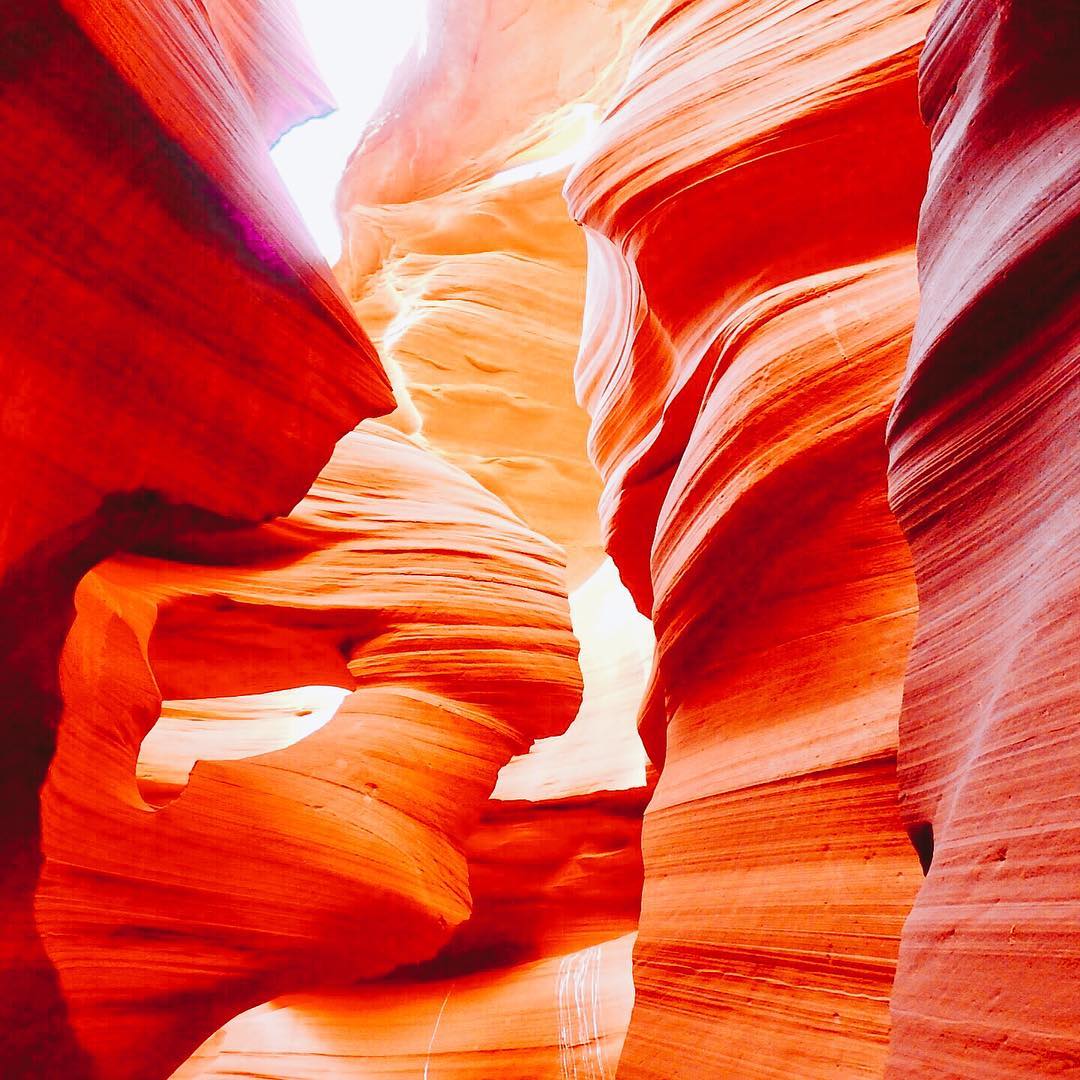 アンテロープキャニオンはアメリカ・アリゾナ州のペイジ近郊にある奇妙な造形をした砂岩に囲まれた渓谷。キャニオンの上流に降る雨がもたらす鉄砲水と風が、砂丘が固まって出来た砂岩を長い年月をかけて狭く深く削り出すことでつくられました。