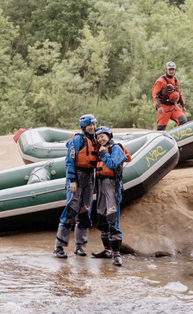 スケールの大きな手つかずの自然が魅力的な北海道には、ラフティングのスポットが点在しています。ルスツリゾートから車で30分程移動し、尻別川の上流へ。しっかりレクチャーを受け、ウェットスーツを着ていざ出発!