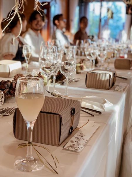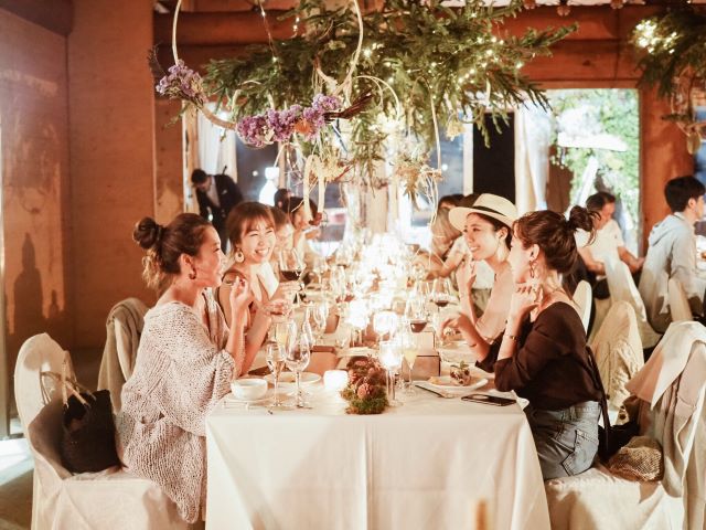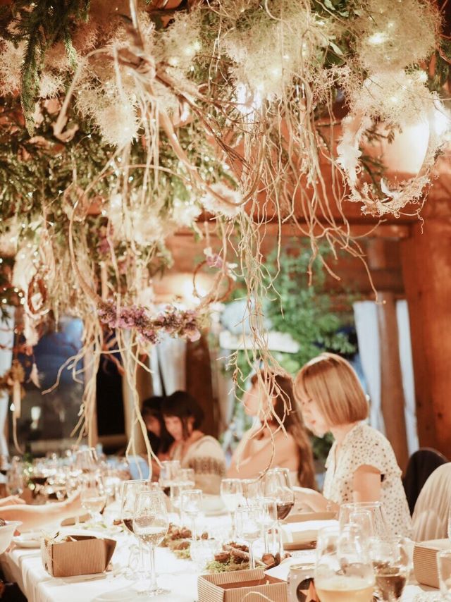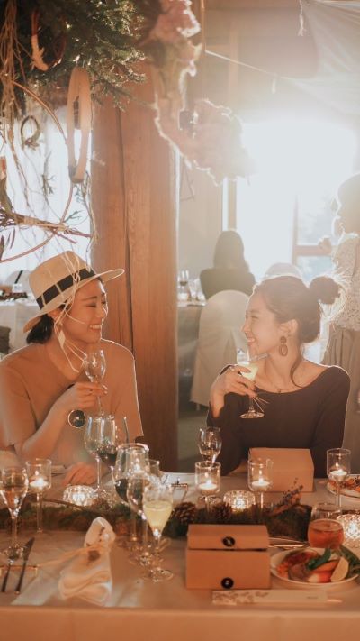 ディナータイム。今回は特別にログハウスが食事会場に!レストラン内には素敵な装飾が散りばめられていて、まさに女子旅には嬉しい、いつもとは違う特別な空間でした!