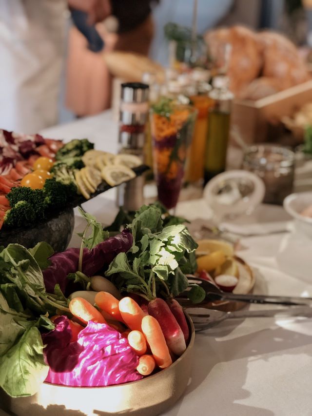 テーブルにずらっと並ぶ鮮やかな北海道の新鮮な生野菜は、ブッフェ形式で食べ放題。