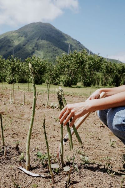 新千歳空港から車で約90分程。まずは北海道最大級のルスツリゾートの直営農場 - ルスツファーム - に到着!ファームでは季節ごとに旬の野菜を約40種栽培しているそう。この旅では、今期最期のお野菜 -アスパラガス- の採取体験が出来ました!