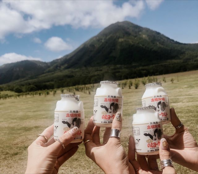 ヨーグルト、ハスカップソーダなど北海道の美味しいドリンクで乾杯。暑い高原の中での一杯はお酒よりも美味しいかも...