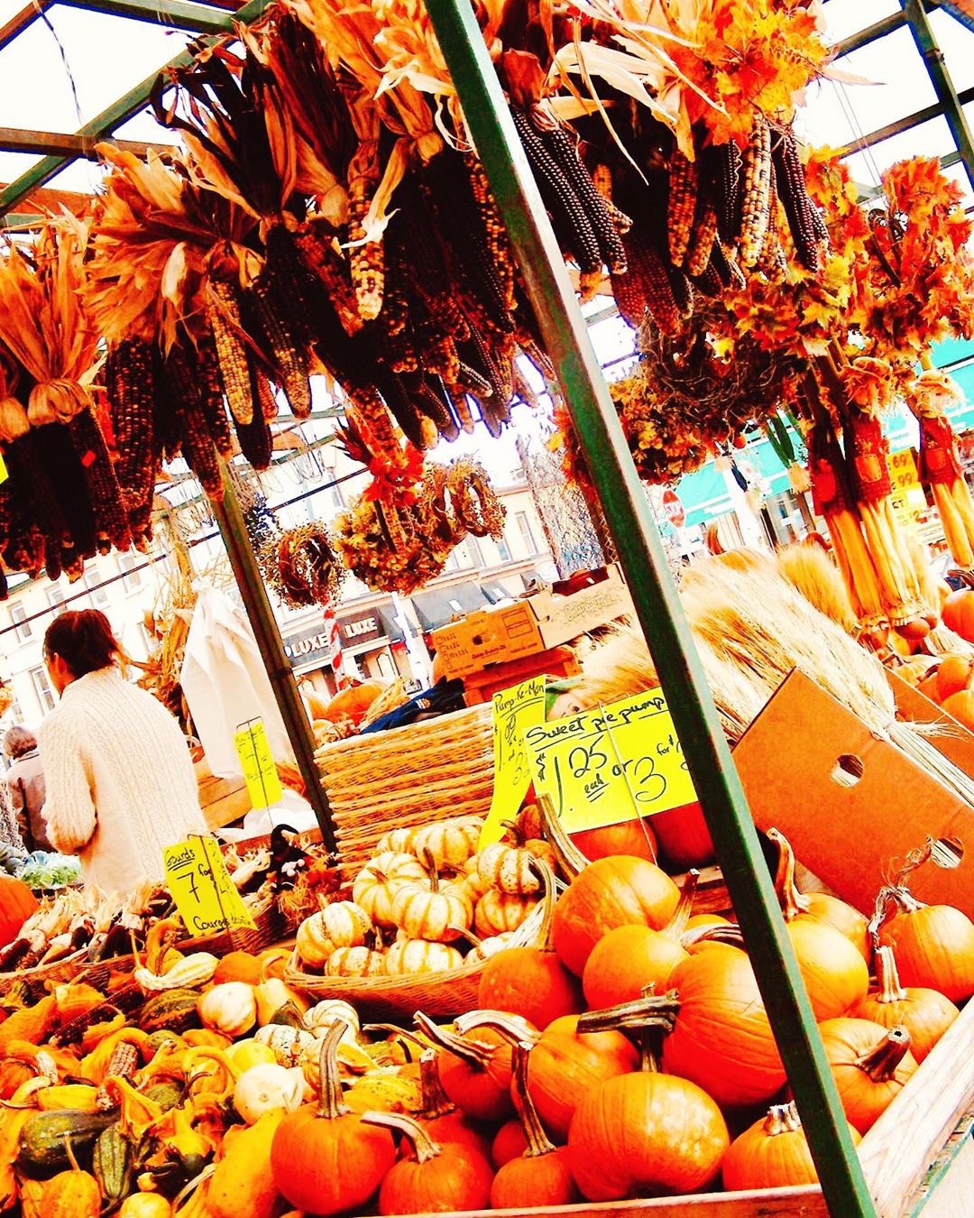 旬のフルーツや野菜、花々などの屋台をはじめ様々なものが集まる市場。秋はハロウィンに使えそうな大きなカボチャもあるんですね。