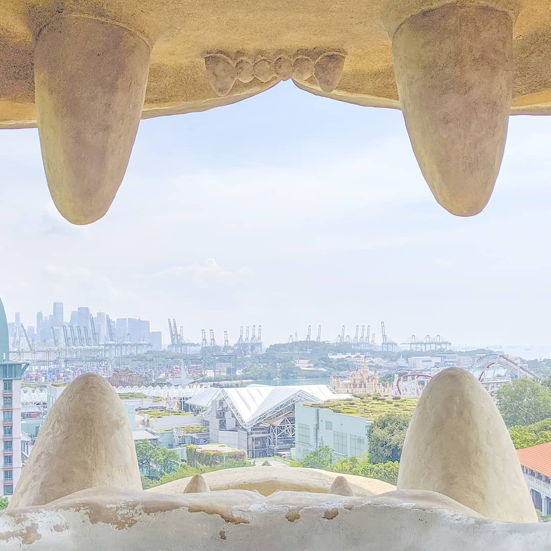 写真提供: @xiong.72さん【投稿コメント(抜粋)】“セントーサ島のマーライオンは、口から水は出てないけれど、頭や口から展望台に。しかもちゃんと歯も生えててかわいい?