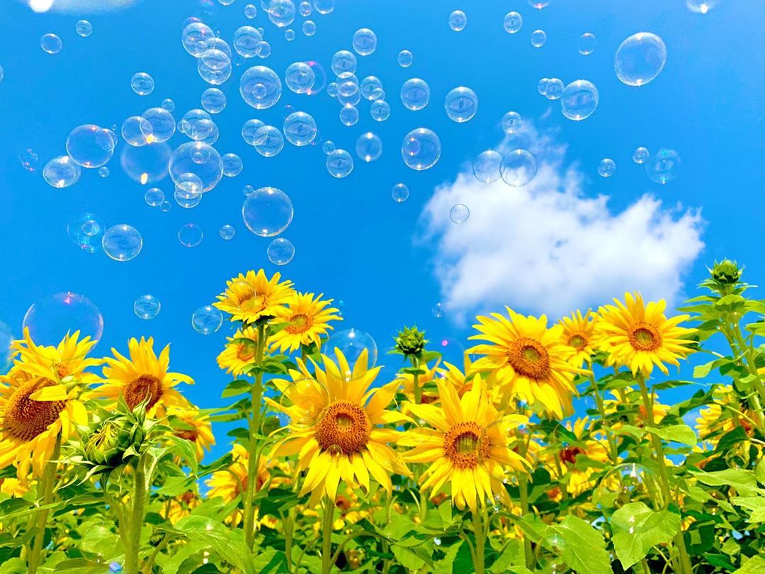 大好きなひまわりとシャボン玉を一緒に撮りたくて試行錯誤して撮った1枚です