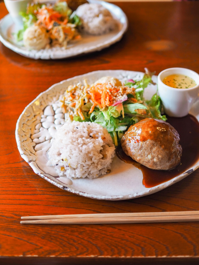 美しい日本庭園を見ながら食事を楽しむことができる「畔亭」ランチプレートで食べたハンバーグが絶品でした!お店の落ち着いた雰囲気も素敵です。
