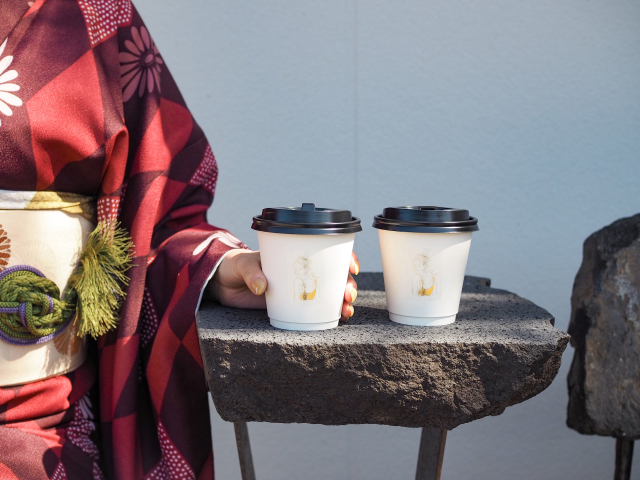 萩城下町から徒歩圏内、コーヒーとカカオを自家焙煎して販売するカフェお店の前にはおしゃれなベンチもあって写真と撮るスポットとしてもおすすめです!