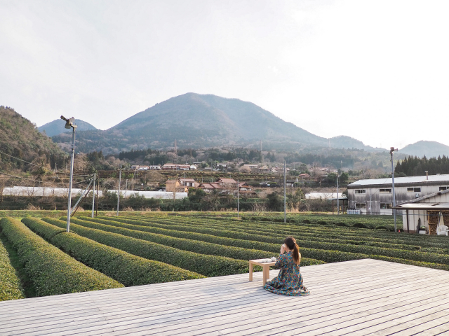 茶畑の中に作られた「お茶テラス」煎茶体験は美味しいお茶の淹れ方を教えていただいたり飲み比べをすることが出来ます。青野山と茶畑を一望できるテラスは癒しの空間でした!