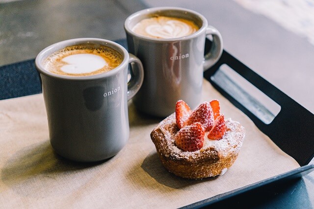 イチゴのデニッシュを選び、コーヒーを飲みながら、ゆっくりと時間を過ごすのも旅の醍醐味。