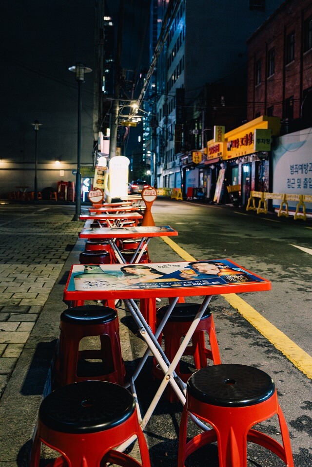 今回宿泊した乙支路(ウルチロ)エリアのホテル近くにある、「乙支路・ノガリ横丁」へ。1日の終わりに、韓国ドラマで見て憧れていた外飲みを体験。