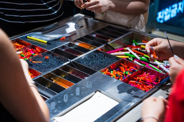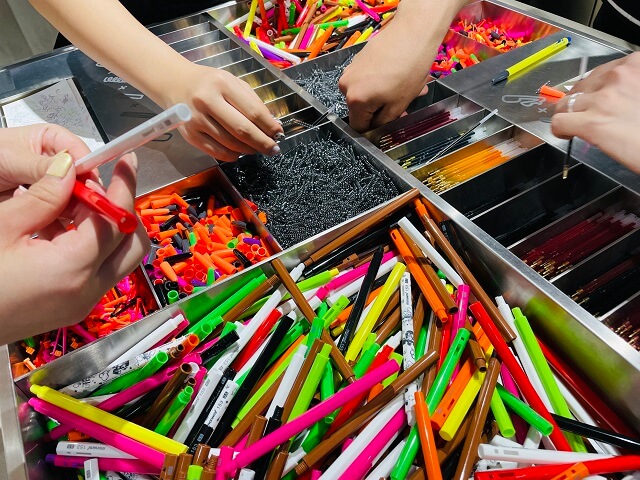 「MONAMI」には、好きなカラーのキャップや軸を選んで組み合わせることでオリジナルのボールペンが作れるコーナーや刻印サービスがあります。