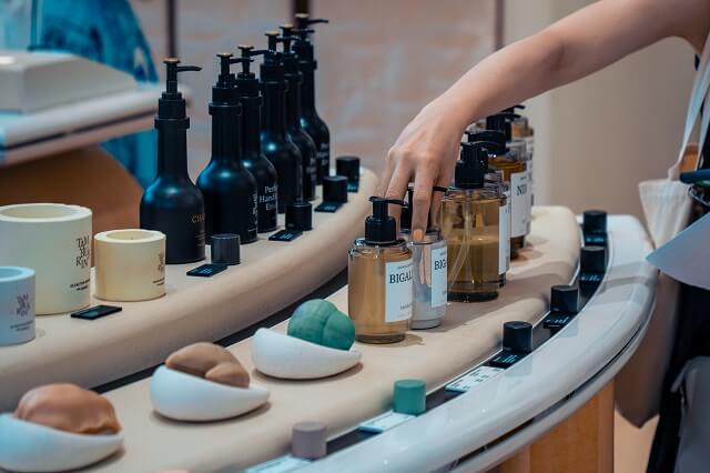 店内には、香水はもちろん、ハンドクリーム、石鹸、キャンドルなどの香りモノがズラリ。個人的に香水にそこまでこだわりはなかったのですが、色々試させてもらうと段々テンションが上がってきます。