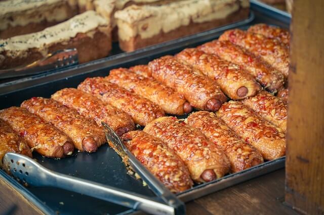 看板メニューは粉砂糖が三角錐の形にこんもり乗った「パンドーロ」のようですが、個人的な推しは「チリソーセージ」。いわゆる惣菜パンで、甘辛な韓国っぽいテイストがツボでした。