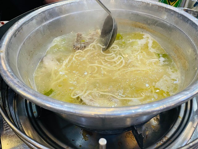 〆にはカルグクス(うどんのような麺)を追加オーダー。大きな鍋いっぱいのスープを飲み干す勢いで食べ尽くしました。美味しいものでお腹も心も満たされ、ソウル1日目終了です。正直これで帰国しても後悔しないレベル!!