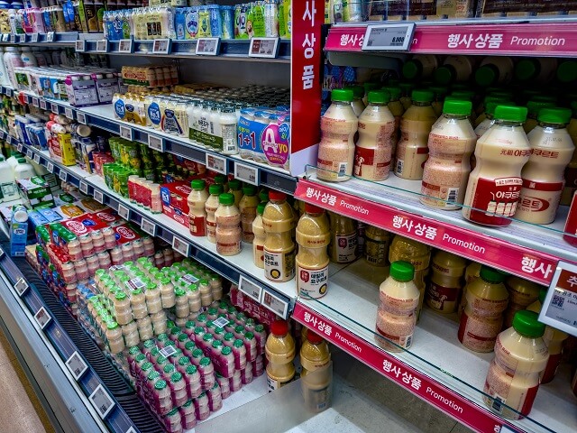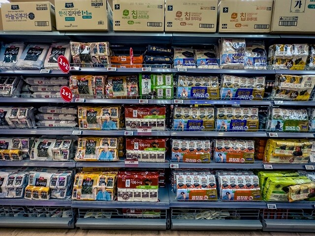 日本の一般的なスーパーの何倍も広く、見ているだけでもワクワクするお店。コスメや韓国のり、お菓子、お茶、調味料など、「韓国のお土産と言えば」な商品やブランドは大体揃うので、帰国のパッキング前に訪れるのに最適です。入店したら「さすが海外」なドデカカートを押しながらいざ出陣。