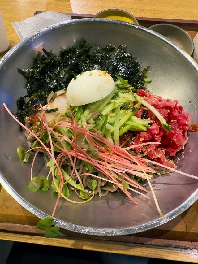 ショッピング後は、地下1階のフードコートでちょっと早めのランチ。サムギョプサル、冷麺、カルグクス、純豆腐、ビビンバなど、韓国料理が目白押しです。たかが空港の食堂と侮ることなかれ。味は抜群でした。空港スタッフの方の姿も多くお見かけしたので、多分現地の方からしても美味しいのだと思います。