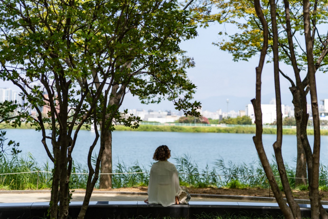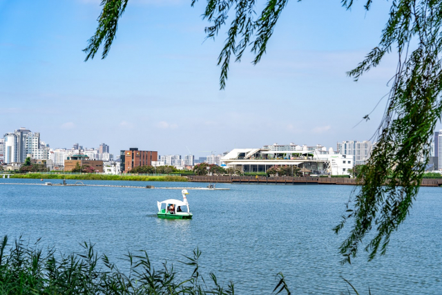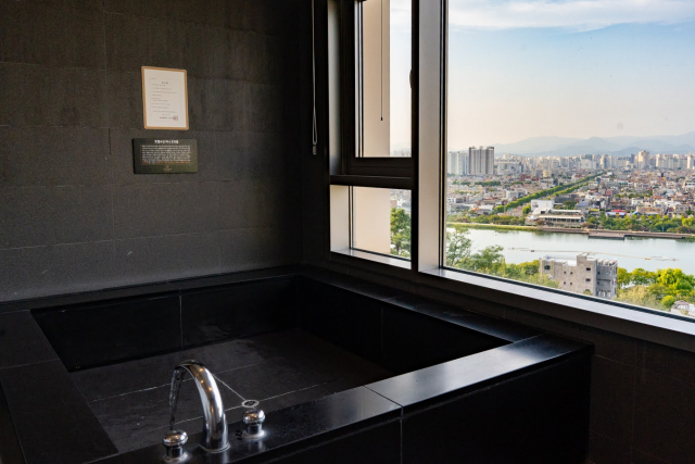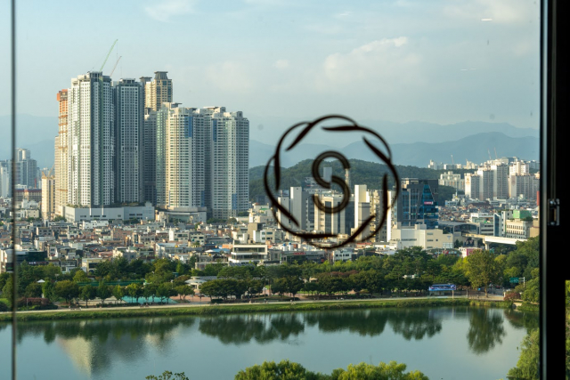 窓からは、大きなスソン池と大邱の景色を一望できます。