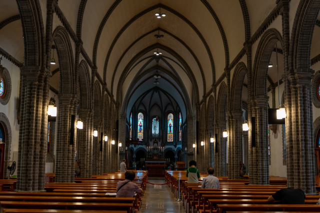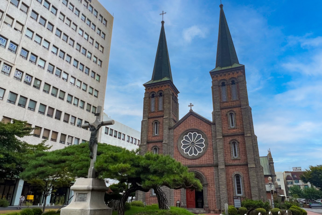 「桂山聖堂(ケサンソンダン)」は、ロマネスク様式とゴシック様式が融合した建築の聖堂。韓国の3大聖堂の一つです。