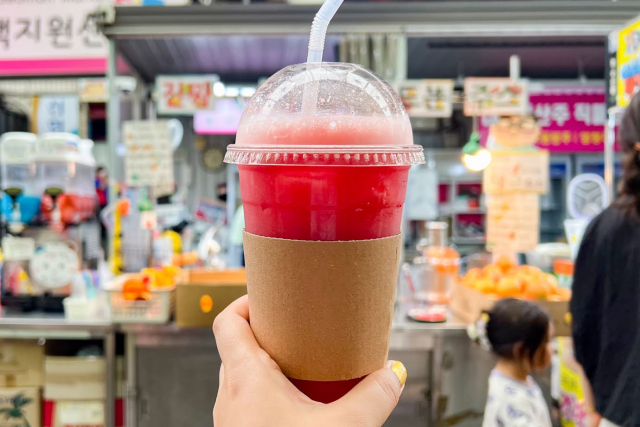 フルーツジュースを販売する屋台もあるので、作りたてのスイカジュースも買いました。