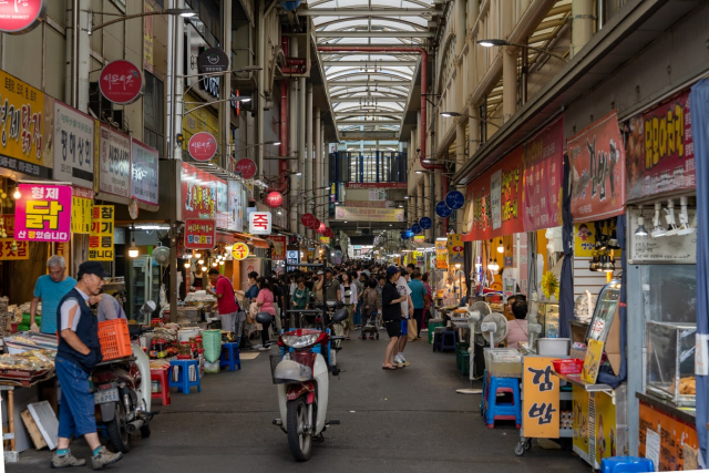 2日目は、大邱市随一の繁華街「東城路(トンソンロ)」で、お買い物やカフェ巡りなどを楽しみます。お土産の購入はここで済ませるのがおすすめ。ショッピングロードがあり、コスメショップや洋服屋、カフェなどが軒を連ねます。