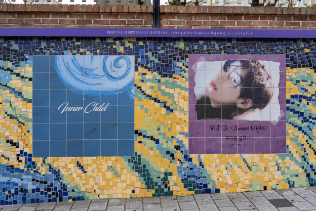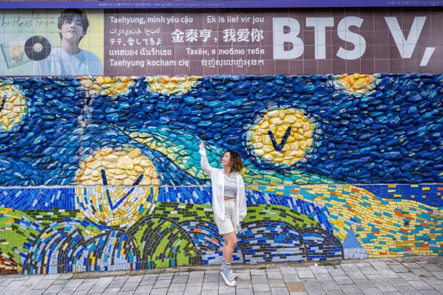 西門市場から約3分の場所に「V壁画通り」があります。ARMYならぜひとも行って欲しい場所!BTSメンバーのVの母校前の壁に、Vにまつわる写真やソロ曲のジャケットが描かれています。