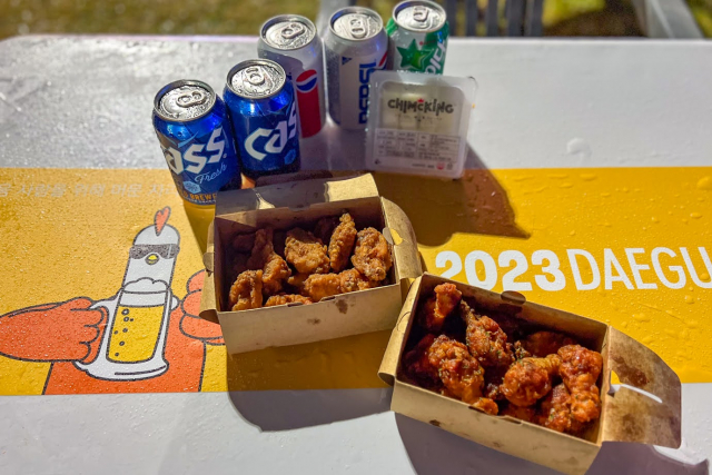今回の旅の目的でもある「大邱チメクフェスティバル」へ参加。チメクとは、チキン×メクチュ(ビール)の飲み会鉄板の組み合わせ。大邱には有名チキン店の本店も多く、チキンとの関係が深い縁で2013年より夏の一大イベントとして始まりました。