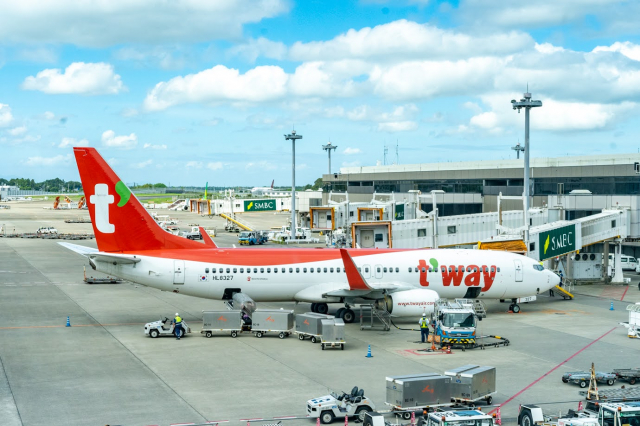 成田空港13:45発のTW202便に乗って大邱へ。日本から大邱への直行便はティーウェイ航空のみ。韓国地方都市に乗換なしで行けるのは嬉しい……!大邱国際空港は大邱市内にあるので、すぐに観光をスタートできます。移動時間が短く済むので、弾丸旅行でもたっぷりと遊べますよ!