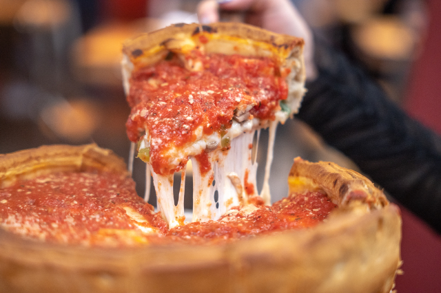 ランチはシカゴピザ!ピザの大きさは大きくて2人では食べきれないほど。