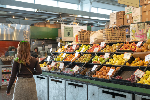 マーケットでお買い物したり、コーヒーを頼んだり。