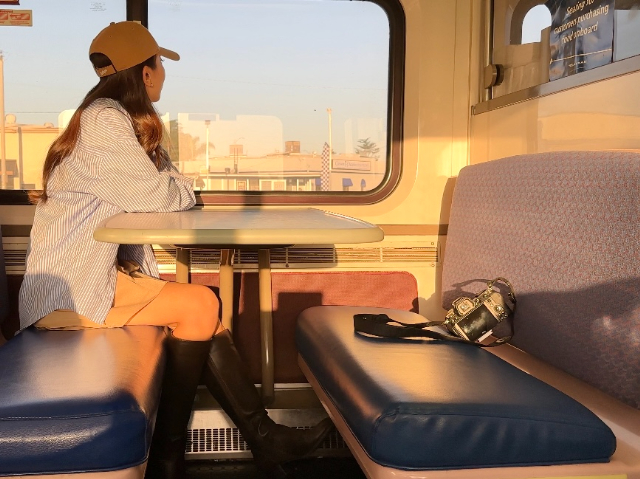 ソルバング〜サンタバーバラ〜ロサンゼルスを繋ぐ路線は海沿いを走行するタイミングが多くあり、列車の中から海と空を臨む絶景が度々現れ、シャッターを切る手が止まりませんでした。