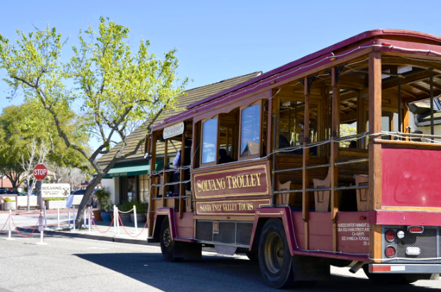 ソルバングでは真っ赤な可愛いトロリーが走っていますが、観光は基本的に徒歩でOK。