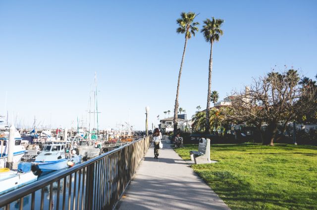 サンタバーバラ港の防波堤に遊歩道があり、防波堤の先端 まで歩いて行くことができます。