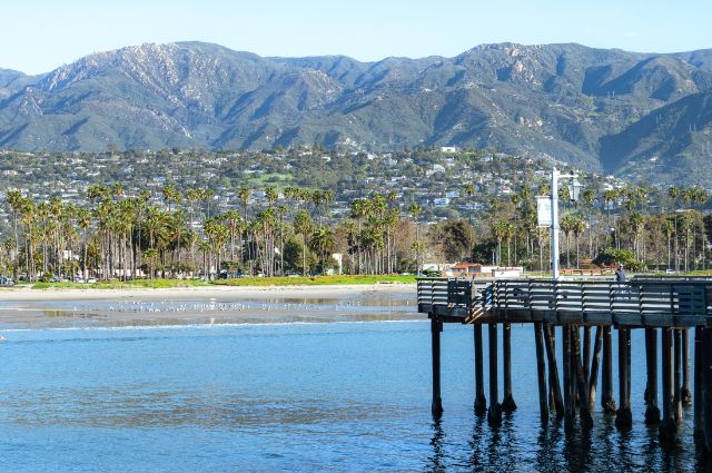 桟橋奥からみたサンタバーバラの街並みと後ろにそびえ立つ山々の景色は圧巻。