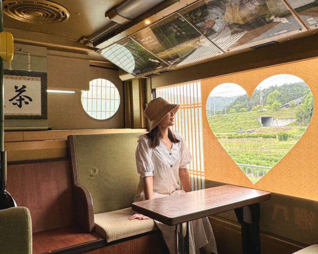 宇治茶をコンセプトにした特別車両は、バス車内が猪目窓になっていて可愛いの♡